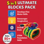 • STEM Educational Benefits: Our 5-in-1 Building Blocks for Kids Combo Pack is more than just a toy; it’s an educational & learning tool. As your toddler engages in building and creating different structures, they develop essential skills such as spatial awareness, fine motor skills, and problem-solving abilities. Watch as they learn about balance, symmetry, and basic STEAM engineering concepts through hands-on play.
