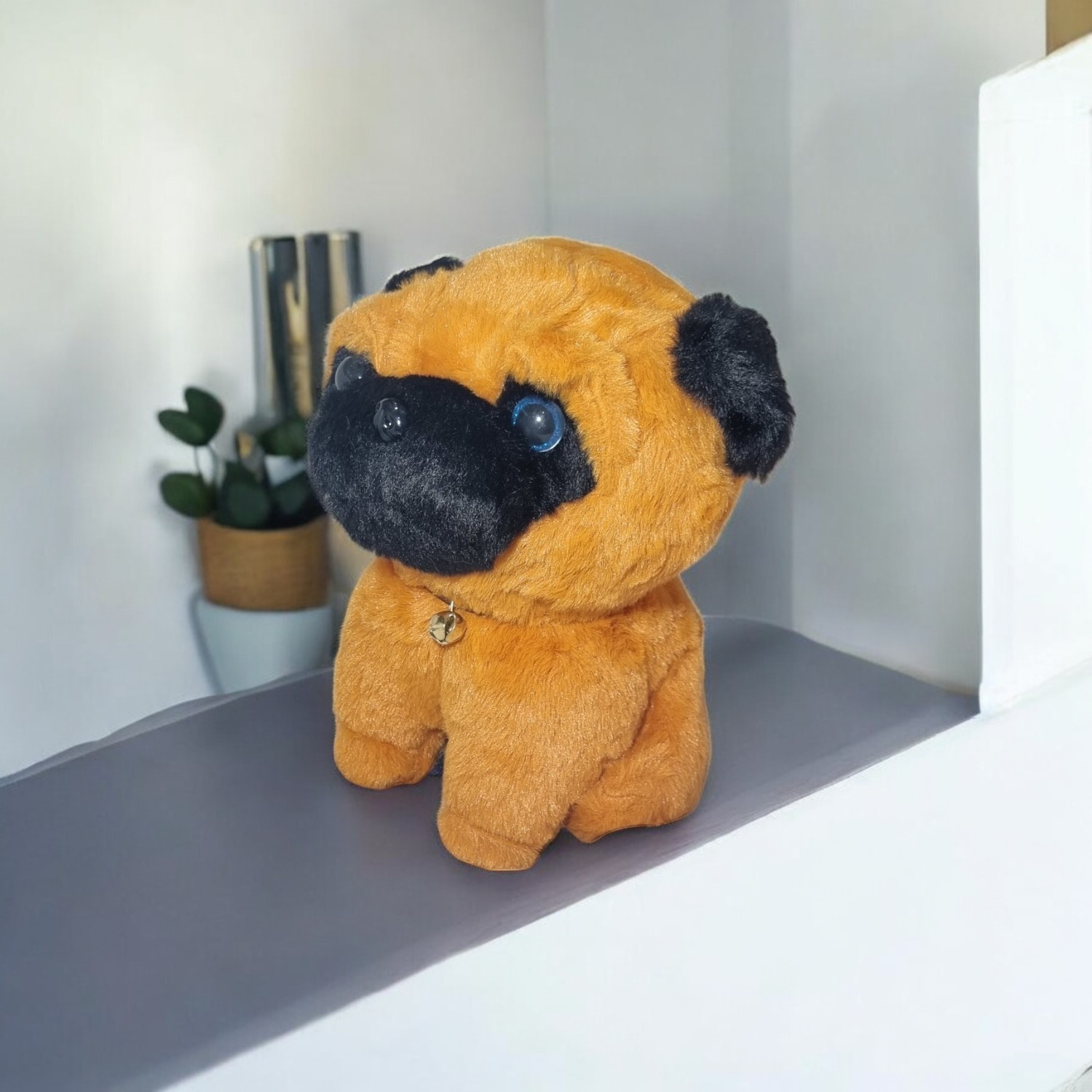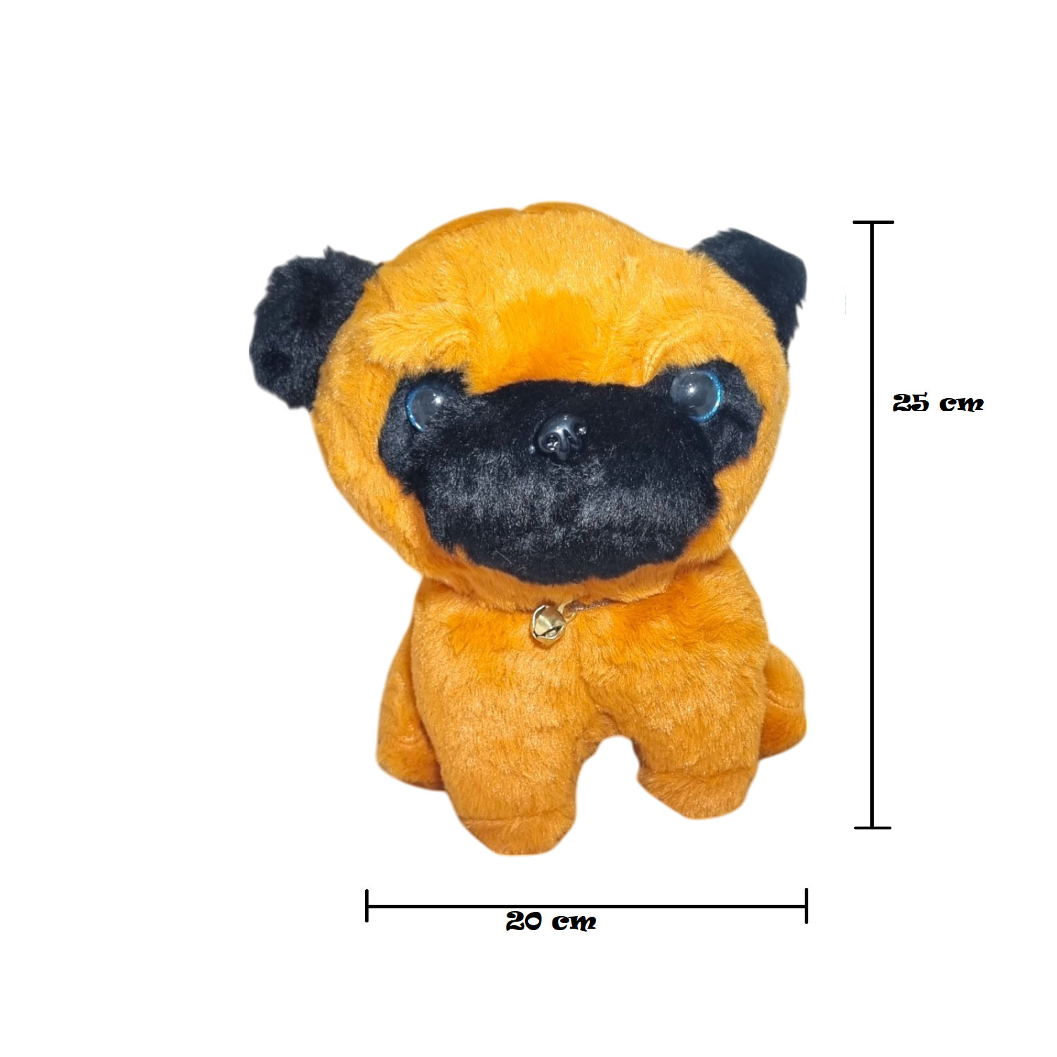 Cute Pug Dog Soft Toy – Brown & Black Plush Stuffed Animal with Bell Collar – Ultra-Soft Cuddly Puppy Toy for Kids, Babies & Dog Lovers – Ideal Gift for Birthdays, Valentine’s Day & Home DΓ©cor – 25cm
