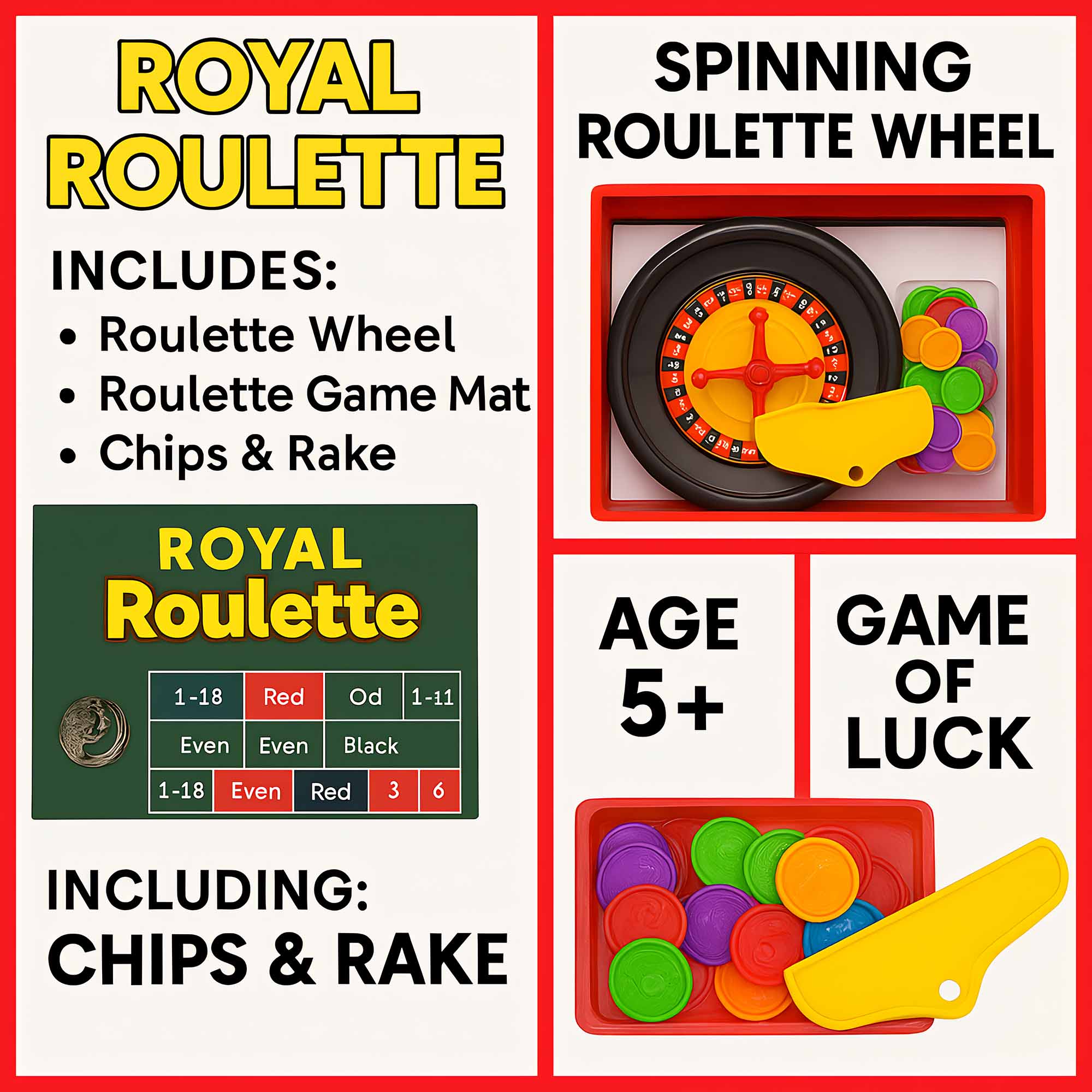 Whether you’re hosting a family game night, planning a party, or just looking for a screen-free indoor activity, the Royal Roulette Game is a winning choice. Compact and portable, this kit provides endless hours of entertainment and bonding for friends and family alike.