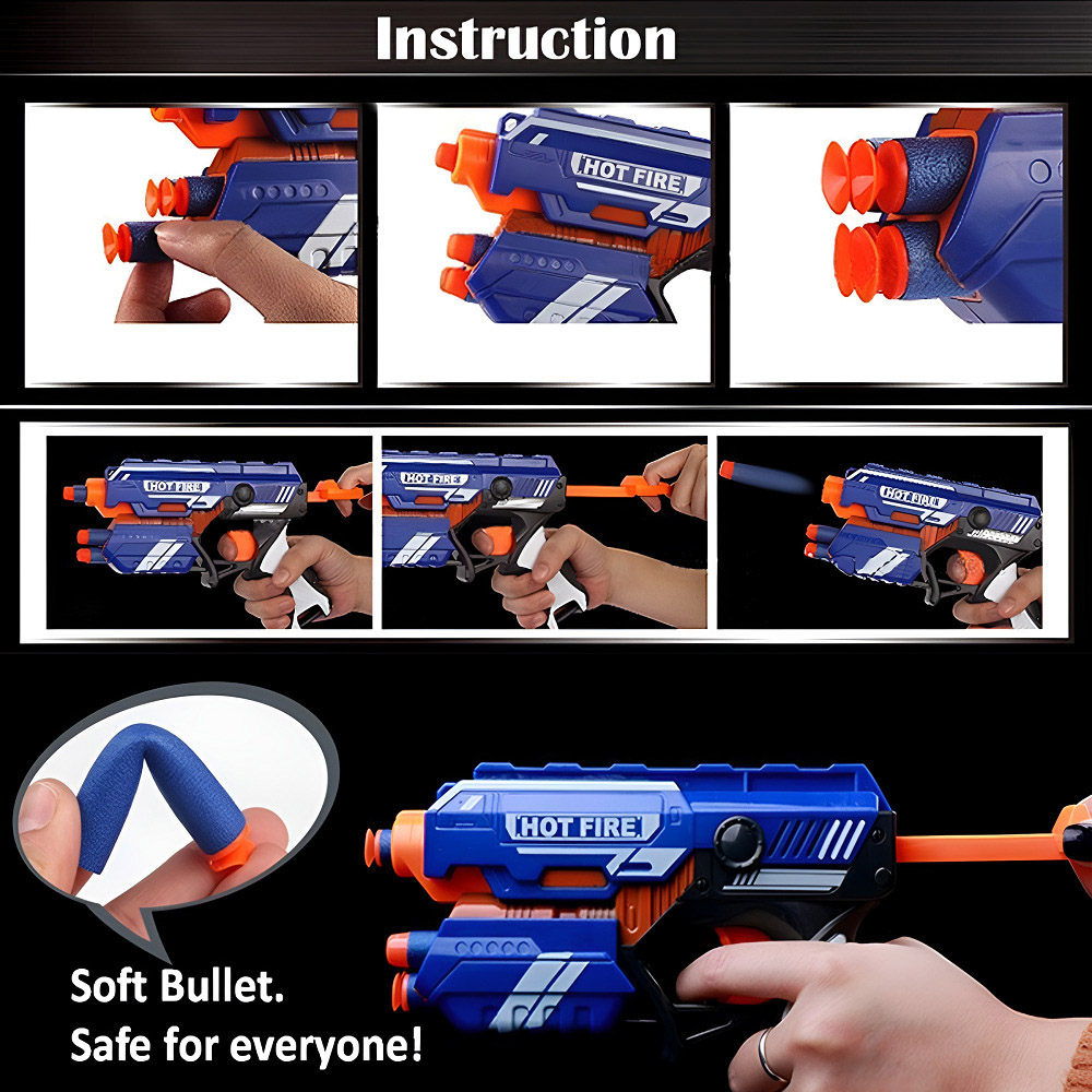 • For Kids Foam Blaster Soft Bullet Guns are fun for boys with Foam Bullets and Suction Darts for kids. Have a great shooting dart game with this Blaze Storm Manual Soft Bullet Gun. Kids will love to fire soft foam bullets and suction darts and hit imaginary targets.