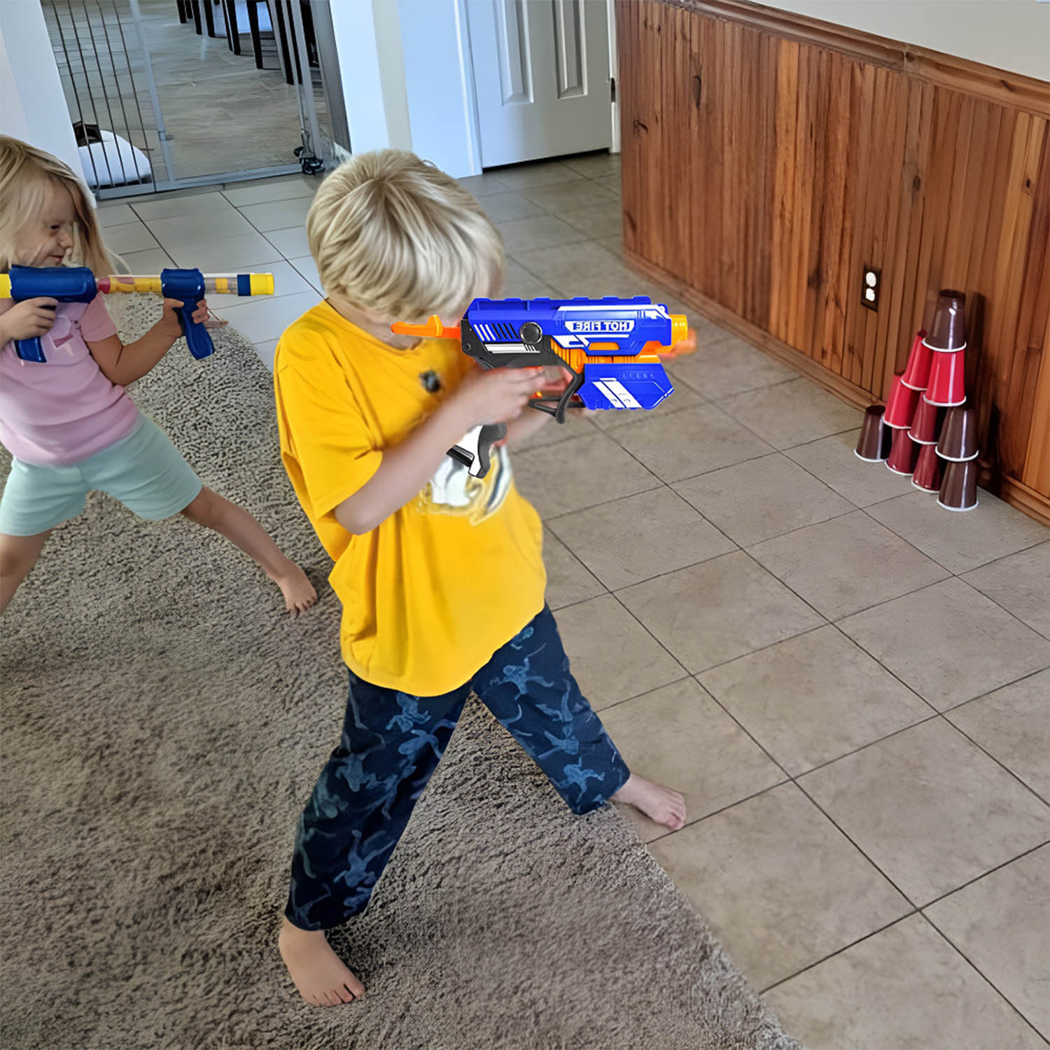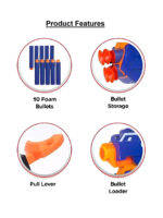 • Featuring a pull-back trigger firing action and quick chamber switching function, this gun is great for playing head to head or in teams. Quick to load bullet chamber loads and shoots at the same time