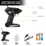 • 🌫️ REALISTIC MIST SPRAY WITH DAZZLING LED LIGHTS: Enhance your off-road adventure with the truck’s mist spray feature! Just add water to the special compartment, and a cool mist shoots from the rear, simulating an exhaust effect. Synchronized LED lights illuminate the mist, creating a futuristic and thrilling look for an exciting driving experience, day or night.