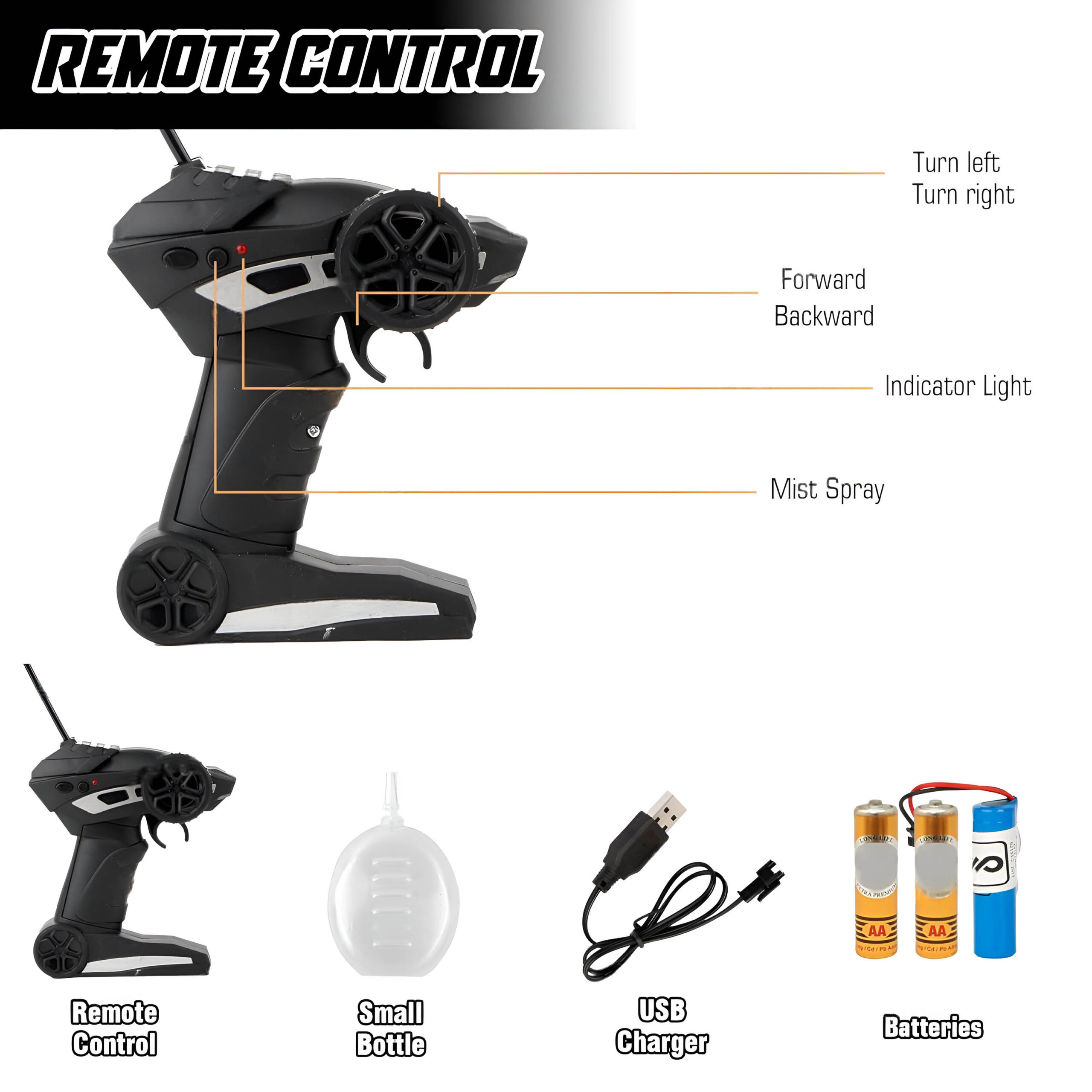 • 🎁 PERFECT GIFT FOR KIDS: This Remote Control Monster Truck offers exciting features like mist spray and LED lights, with an easy-to-use remote control for kids aged 5+. Its durable design ensures hours of fun, making it the perfect gift for any occasion.
